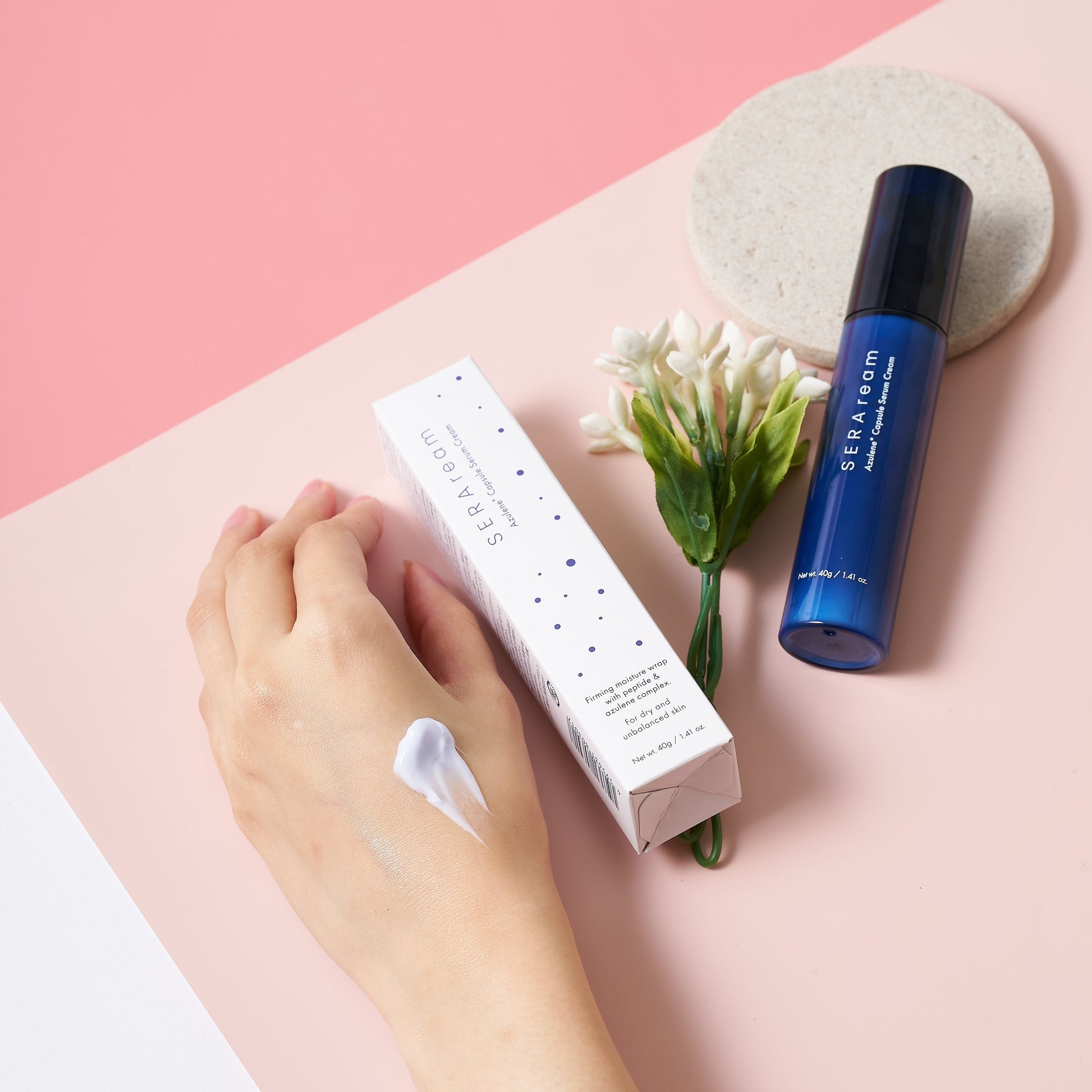 カプセルが肌に残ったりしませんか? プッシュする時にカプセルは弾ける仕様ですが、まれに残ることもあるので、気になる場合は手のひらで潰してから、その後にお肌に馴染ませてください。